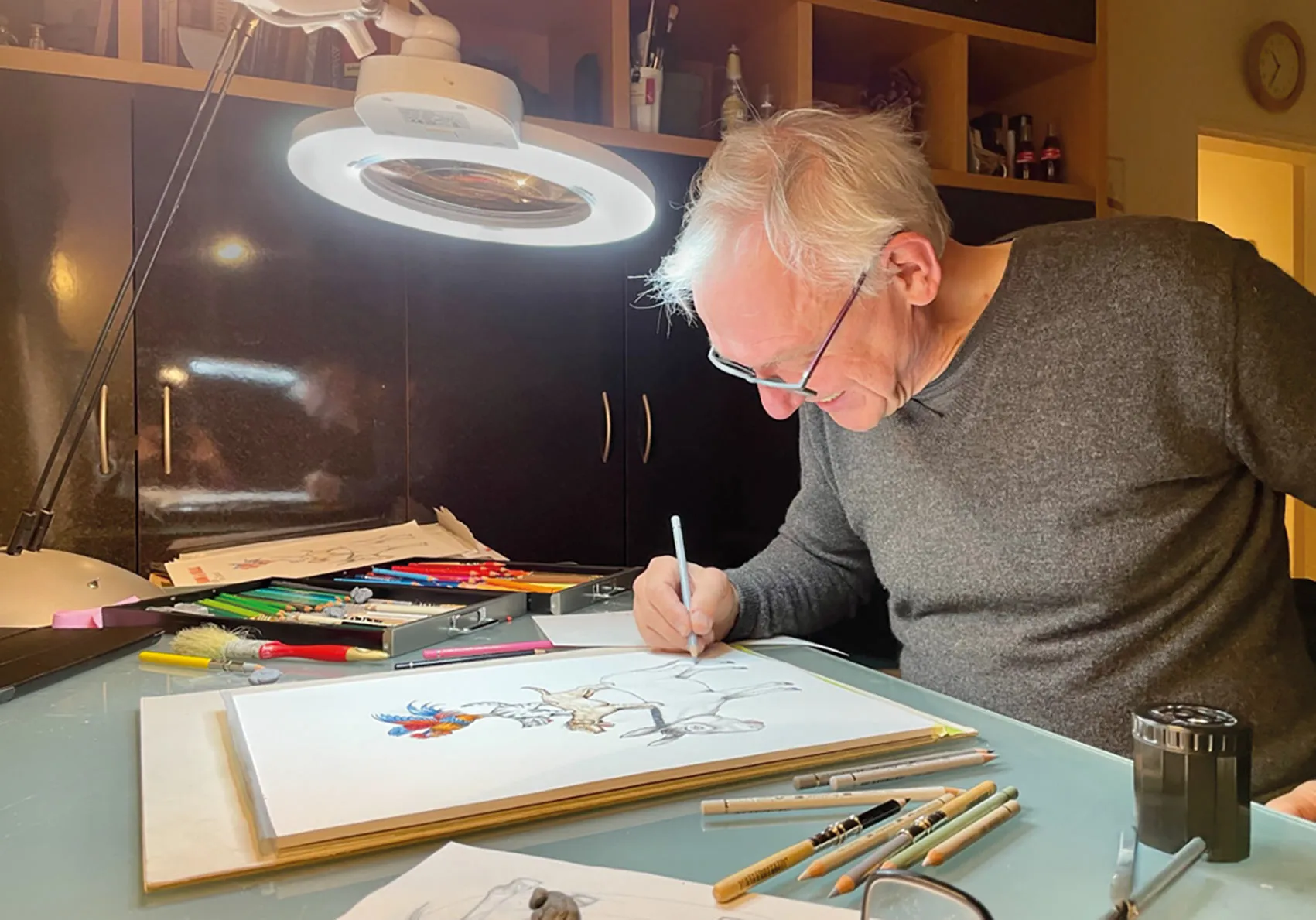 „Die meisten kennen mich als Werber“, sagt er mit einem Lachen. Strategien, Promotions, Corporate Identity. Seit über 35 Jahren begleitet er mit seinem Agenturteam Unternehmen. Dass sich hinter diesem Profil immer auch ein Künstler verbarg, wissen längst nicht alle.