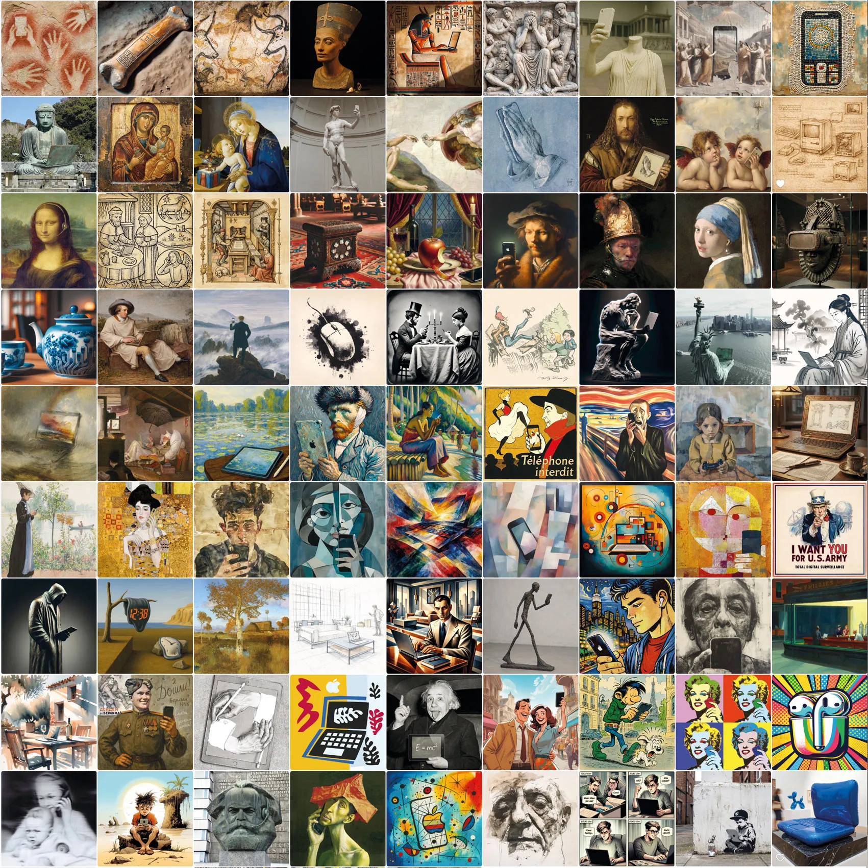 „Digitale Kunstgeschichte – Ein ironischer Blick auf Kunst und Technologie“ heißt das 168 Seiten starke Werk mit 80 großformatigen Abbildungen. Kein theoretisches KI-Sachbuch, kein Leitfaden. Ein Kunstband.