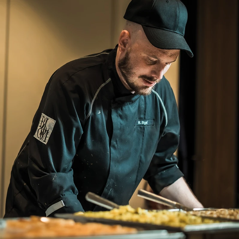 Jede Feier ist so einzigartig wie die Menschen, die sie begehen. Ob Hochzeit, Taufe, Konfirmation, Firmenfeier oder Tagung – im Restaurant Bloom entsteht jede Veranstaltung mit viel Liebe zum Detail. Frische, saisonale Zutaten aus der Region bilden die Grundlage der Küche. Küchenchef Maxim Bigaj und Sous Chef Thor Vandersee verwandeln diese mit Kreativität, handwerklichem Können und Leidenschaft in kulinarische Erlebnisse, die nicht nur satt machen, sondern Erinnerungen schaffen. Individuell abgestimmte Menüs und Buffets erzählen dabei ihre ganz eigene Geschichte. Abgerundet wird das Genusskonzept durch täglich frische Kuchen aus einer renommierten Konditorei aus dem Bremer Schnoor.